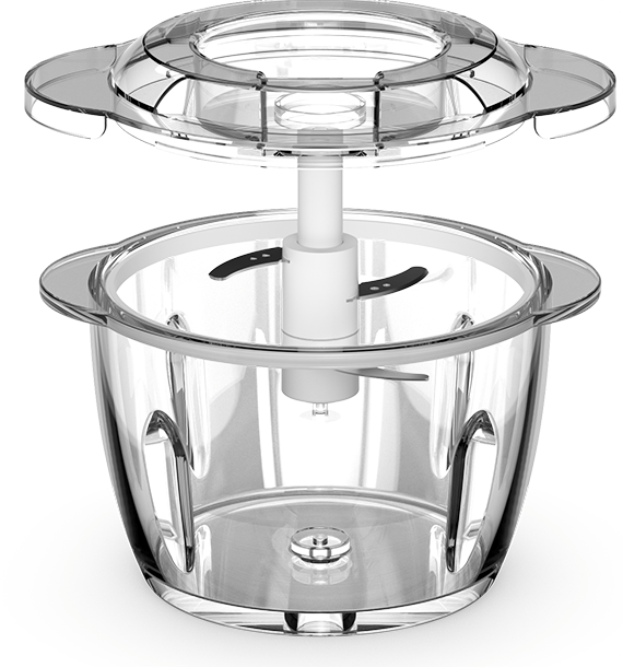 Ehhez a készülékhez egy tartós, 1,2 literes edény tartozik, beosztással a pontos mérések érdekében. Mostantól könnyen felaprítható és összekeverhető fűszernövények, diófélék, sajtok vagy akár bébiételek.