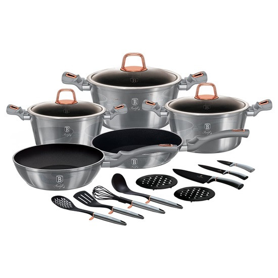 A BerlingerHaus serpenyői és edényei szinte kivétel nélkül kovácsolt alumíniumból készülnek, amely lehetővé teszi a magasfokú hővezetést. Emellett 3x tartós tapadásmentes titán bevonattal rendelkeznek, aminek köszönhetően az étel nem ragad és nem ég az edény aljára, így az ételek minimális zsiradék hozzáadásával is egyenletesen fognak átsülni és szaftosak maradnak.