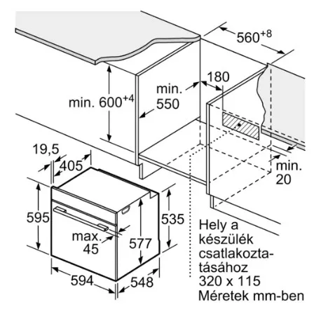 - Beépítéshez szükséges minimális szélesség: 560 mm