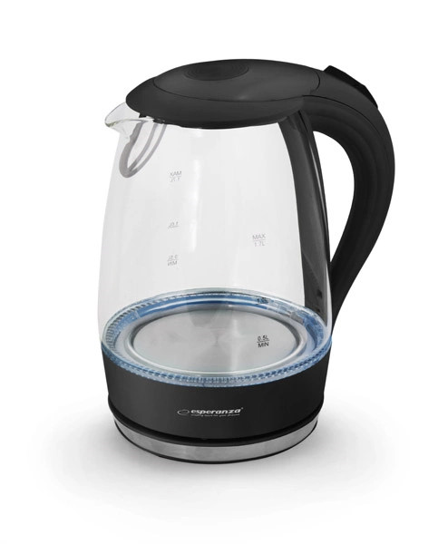 Vezeték nélküli elektromos vízforraló, 360°-ban elfordítható talppal és LED háttérvilágítással. Kiváló minőségű hőálló üvegből készült, beépített fűtőelemekkel.A készülék fedele egy gombnyomással nyitható.