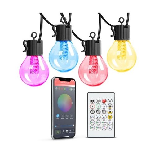 Egy hangulatos teraszra, kertre vágyik? Dobja fel otthonát energiahatékony fényfüzérrel! A hagyományos villanykörtére hasonlító fényfüzér, amely jól mutat bármely kerthelyiségben. A színes LED-ek beállítása a tartozék távirányítóval vagy okostelefonra elérhető, ingyenes alkalmazás segítségével lehetséges. Többféle előre beállított hangulat és fényprogram közül választhat, akár minden LED más színnel is képes világítani. Kiváló választás egy nyári, meghitt, kerti vacsorához, de ideális választás lehet nyüzsgő kertipartikhoz is.