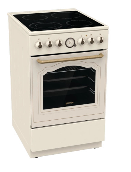 A klasszikus időzítő és az antikolt arany felületű fogantyú remekül kiegészítik a sütő megjelenését.