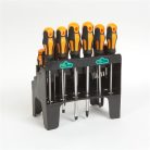Szinte minden szerelési folyamatot kielégítő, nagyméretű csavarhúzó készlet. A szett tartalmaz 12 db csavarhúzót, 40 féle bitfejet, 7 krovafejet, 16 db imbuszkulcsot, valamint a szerszámok áttekinthető tárolására szolgáló tartókonzolt. A konzol kompakt méretének köszönhetően garázsának, műhelyének asztalán nem foglal sok helyet, igény esetén falra is rögzíthető a két akasztólyuk segítségével. A csavarhúzók mindegyike csúszásmentes, két komponensű, a kényelmes és biztonságos használatot elősegítő ergonomikus nyéllel rendelkezik. Ideális felhasználása lehet háztartási barkácsoláskor, kerékpárok, autók szerelésekor és egyéb szerelési folyamatok során.