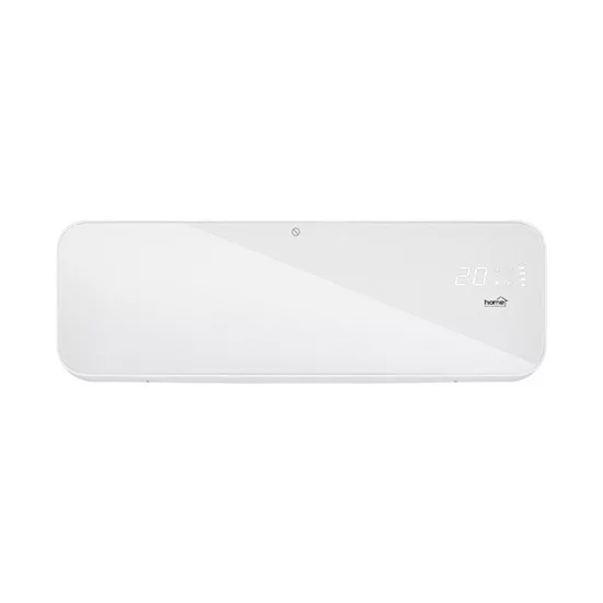 A készülék modern otthonokba illő, fehér üveg előlapja esztétikus külsőt kölcsönöz, miközben diszkréten simul bele a környezetbe. A falra szerelhető kialakítás helytakarékos megoldást kínál, különösen kisebb terekben, fürdőszobákban vagy hálószobákban.