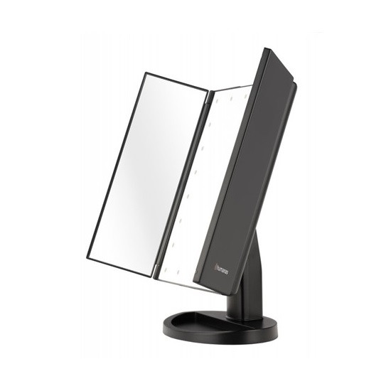 A Humanas HS-ML04 egyedülálló funkcionalitását a speciális összecsukható kapuinak köszönheti. Kinyitva a bal szárnyon egy kiegészítő tükröt találunk, amely kibővíti a teljes kialakítás funkcionalitását. Ez azonban még nem minden. A második szárny két részre oszlik, amelyek különböző típusú zoomot kínálnak – 2x és 3x. A további kiegészítő tükrökkel önbizalmat nyerhet, hogy sminked minden eleme tökéletesre lesz csiszolva.