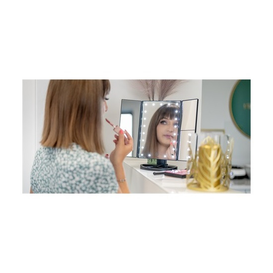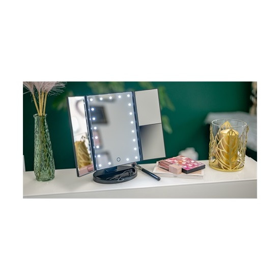 - megvilágított sminktükör további kiegészítő tükrökkel felszerelt