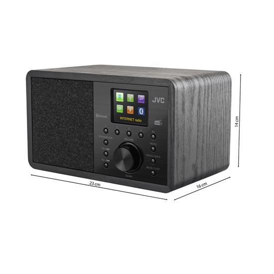 Fedezze fel a tökéletes zenei élményt az új JVC internetes rádióval, amely ötvözi a modern technológiát és számos funkciót. A nagy, 2,4"-os színes kijelzőnek köszönhetően mindig kéznél van minden információ – legyen szó akár 30 internetes rádióállomás választásáról, 30 DAB+ előbeállításról vagy 30 FM állomásról.