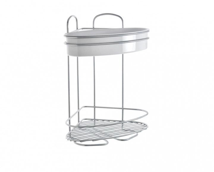 Orbit fürdőszobai, 2 emeletes sarokpolc. Anyaga: fehér műanyag tartó és fém váz. Saját fejlesztésű, chrometherm bevonata által vízálló, rozsdaálló, hőálló és portaszító. 6 év garancia érvényes a termékre. Mérete: 21 x 21 x 35 cm.