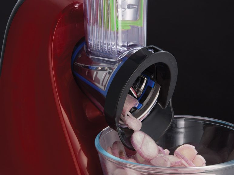 Az aprító és szeletelő tárcsákból közvetlenül a tálba vágja fel az alapanyagokat így könnyű tisztán tartani.