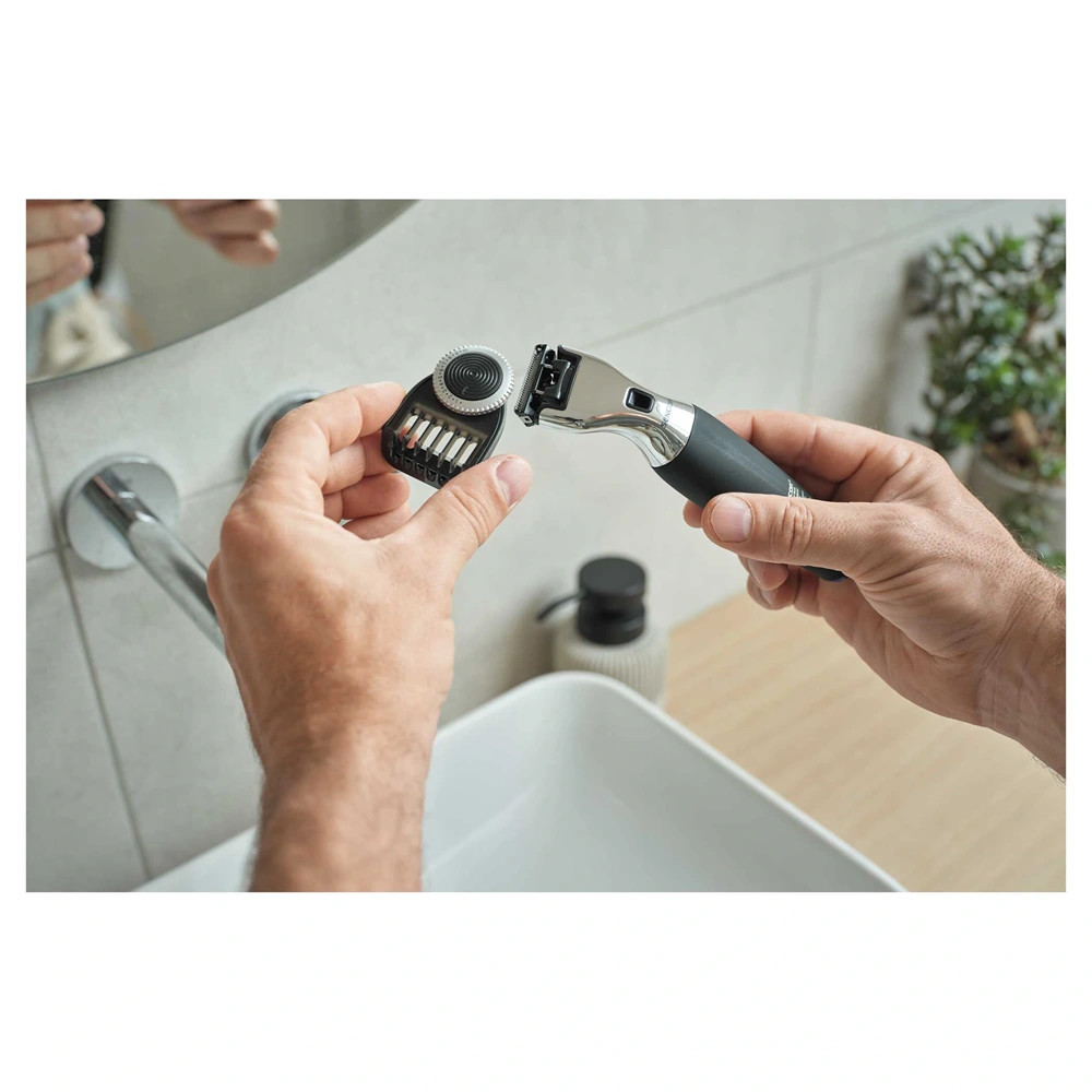 A Sencor SHP 0460BK multifunkciós trimmelő a modern férfi szépségápolási rutin elengedhetetlen része. Kompakt kialakítása és letisztult fekete dizájnja mögött erőteljes teljesítmény rejlik, amely lehetővé teszi, hogy hajad, szakállad és arcszőrzeted mindig tökéletes formában tartsa. A készülék rozsdamentes acél pengéi hosszan megőrzik élességüket, így minden használat során egyenletes, tiszta vágást biztosítanak. A 20 fokozatban állítható vezetőfésű 0,5 és 10 milliméter között precízen szabályozza a vágási hosszt, így bármilyen stílust szeretnél, könnyedén elérheted. Az ergonomikus, csúszásmentes markolat gondoskodik arról, hogy a trimmelő stabilan feküdjön a kézben, még hosszabb használat közben is.
