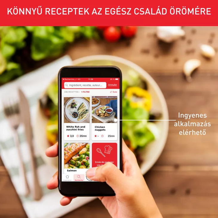 Egyszerű ételek, amelyek mindig tökéletesen sikerülnek a 8 automatikus programnak (chips, nuggets, grillcsirke, pizza, hús, hal, zöldség, desszert) és a kézi üzemmódnak köszönhetően.