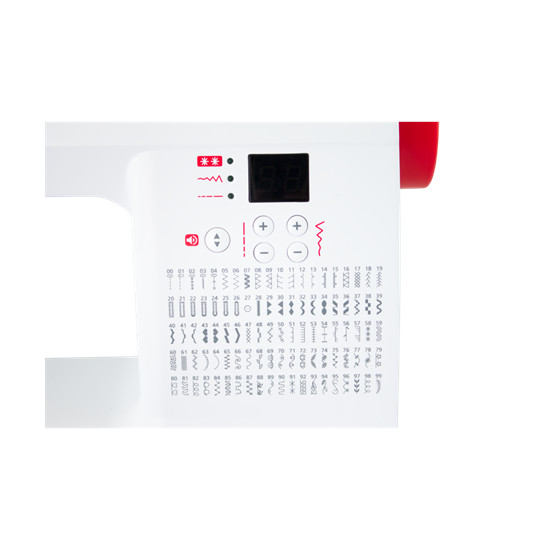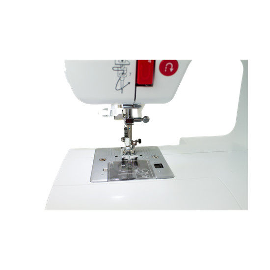 A befűző segéd különösen hasznos, mivel nem kell hosszasan bajlódni a szál befűzésével. A nagy varrófelület, a kivehető tartozék fiókokkal ideális nagy darabok varrására, de akár keskeny ingujjak varrására is. A tartozék fiókban olyan kiegészítőket találunk, mint varrótalpak, vagy plusz orsók.