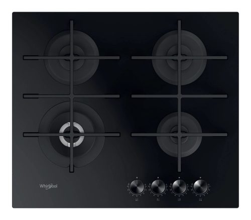 W Collection, Fekete edzett üveg gázlap, 59 cm, 3 gázégő + 1 speciális WOK égő , automata szikragyújtás, elöl jobbra elhelyezett kezelőgombok, egybefüggő iker kereszt öntöttvas edénytartók, csiszolt szegélyű, peremmentes kivitel, Multistep flame 9 fokozatú lángszabályozás