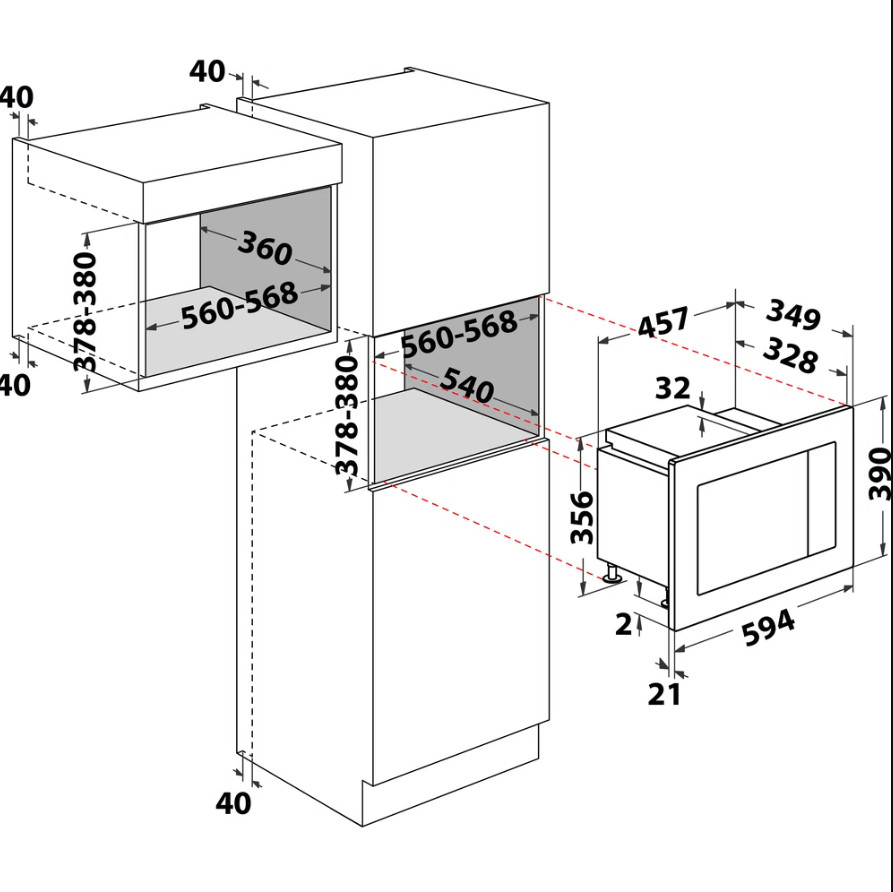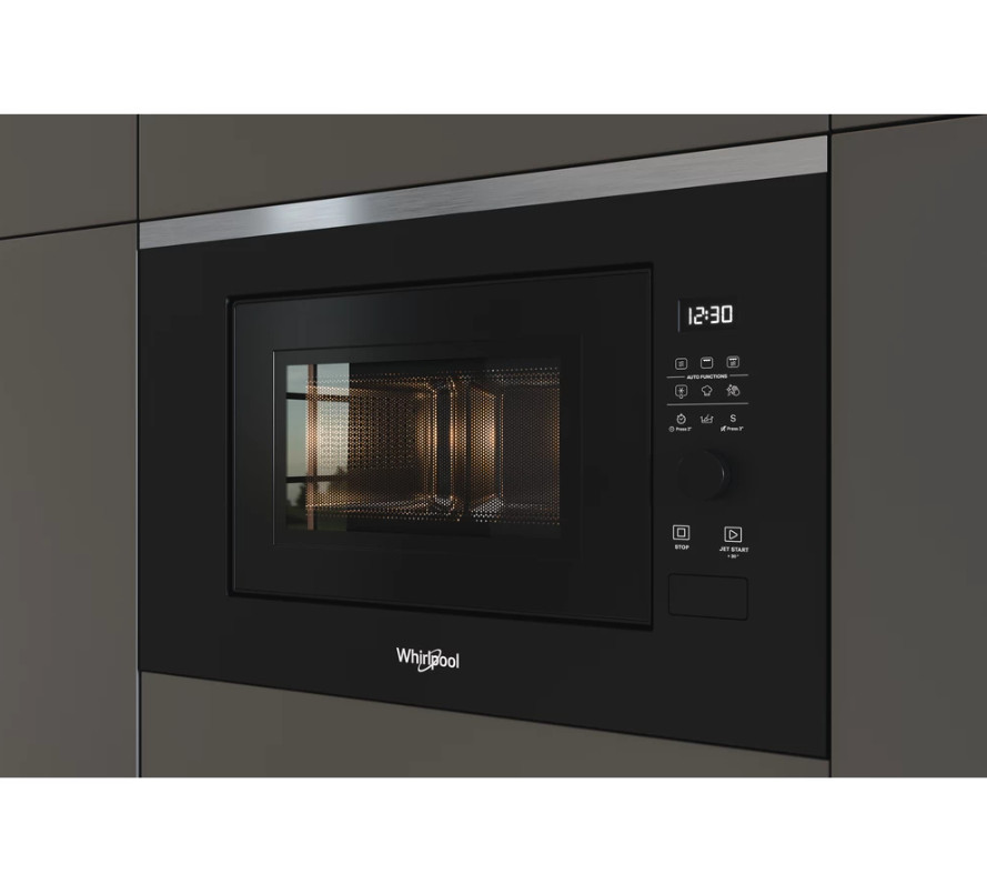 Beépíthető mikrohullámú sütő, 20 liter űrtartalom, fekete készülékszín, gombos vezérlés, mikrohullám teljesítmény 800W, grill 1000W, digitális kijelző (fehér karakterszín), JET Start, JET Defrost, automatikus funkciók, oldalra nyíló ajtó, Készülékméret (Mag.xSzél.xMély.) (mm): 390x594x349 mm
